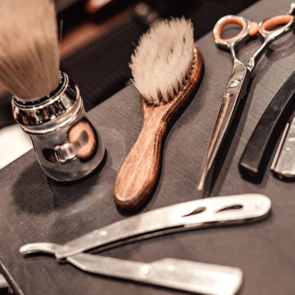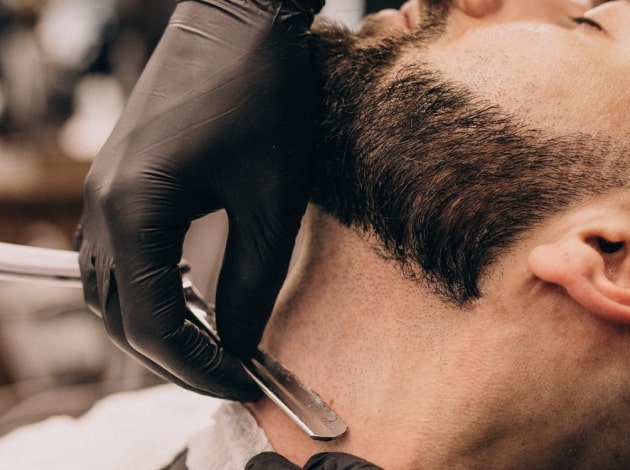 Straight razor shave on the cheeks & neck to tidy up a beard line.